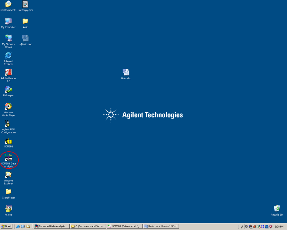 - Double click the “GCMS Data analysis” icon on the screen to open the software.