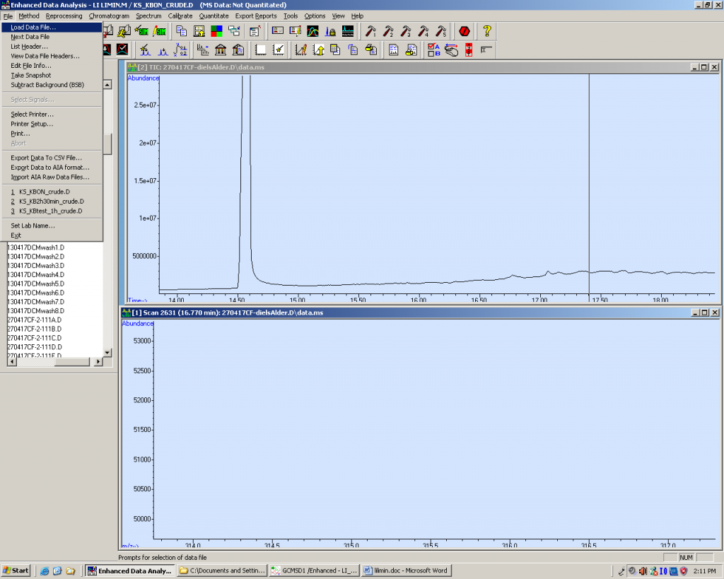 Agilent GC-MS, Enhanced Data Analysis E.01.00