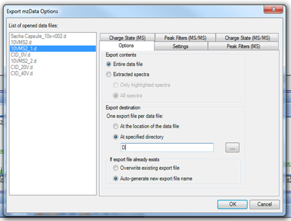 - The export of data will be completed. You will see the exported data as *.mzDATA format in the directory which you have selected previously. Now you can upload this data to our SmartDalton platform.