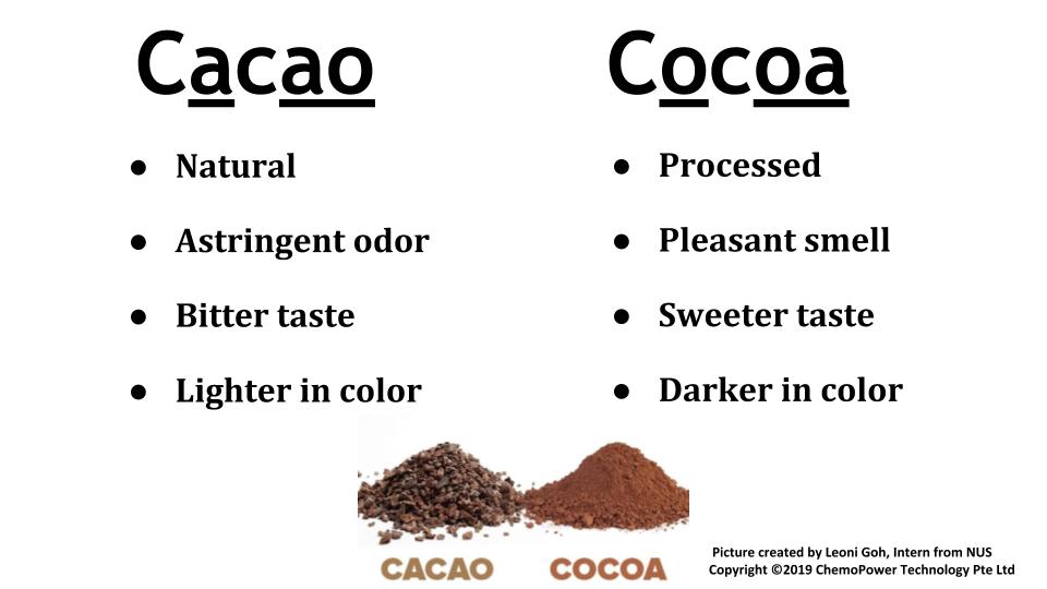 喜欢看食品配料表的朋友们一定会注意到,非代可可脂巧克力制品成分一栏经常有两种可可,英文分别是Cacao和Cocoa,中文就没那么明显,一律写作可可。严格来说,这里的中文应具体写为生可可粉或熟可可粉。这两种可可粉的外观、口味和气味都是不同的。生可可以其独特的涩味和苦味而闻名,颜色较淡,而熟可可则以其甜味和香味而闻名,呈黑褐色。这些差别主要源于加工工艺的不同。