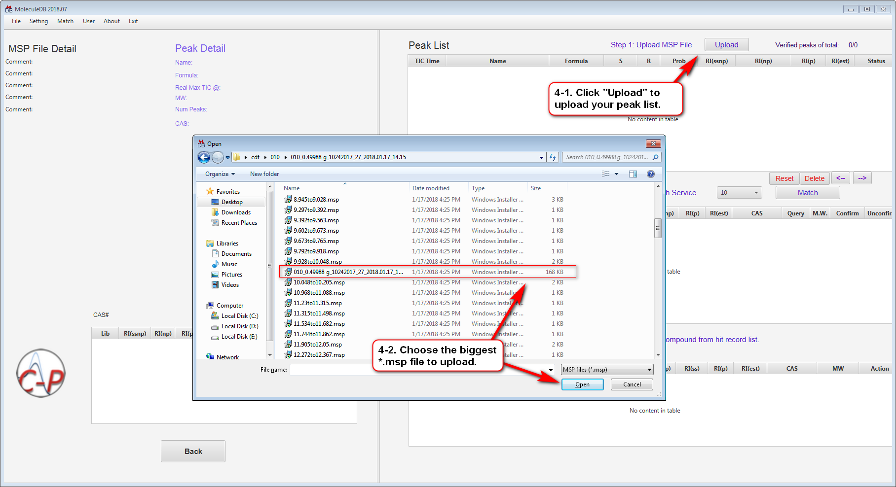 Get your Spectra Data File *.msp generated from SmartDalton™ or other software ready. If the file extension is “.txt” as it is being emailed to you, please rename the file extension to “.msp”. (*.msp file includes collections of spectra with additional information.)